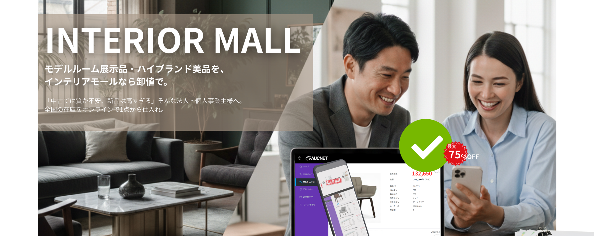 スマホ・PCから24時間いつでも検索・入札。仕入れの手間を大幅カット。